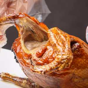 我們對紅燒乳鴿預製菜採用的核心技術之一是急速冷凍。在乳鴿經過獨門醬汁浸滷、並以高溫使外皮達到完美脆度後,我們會立即將其送入零下35°C的環境中進行快速凍結。這個過程能讓食材細胞內的水分瞬間形成微小的冰晶,從而最大限度地避免對肉質纖維的破壞。如此一來,當消費者簡單覆熱時,乳鴿的鮮美肉汁得以完整保留,重現出爐時的多汁口感,確保每一口都如同現做。